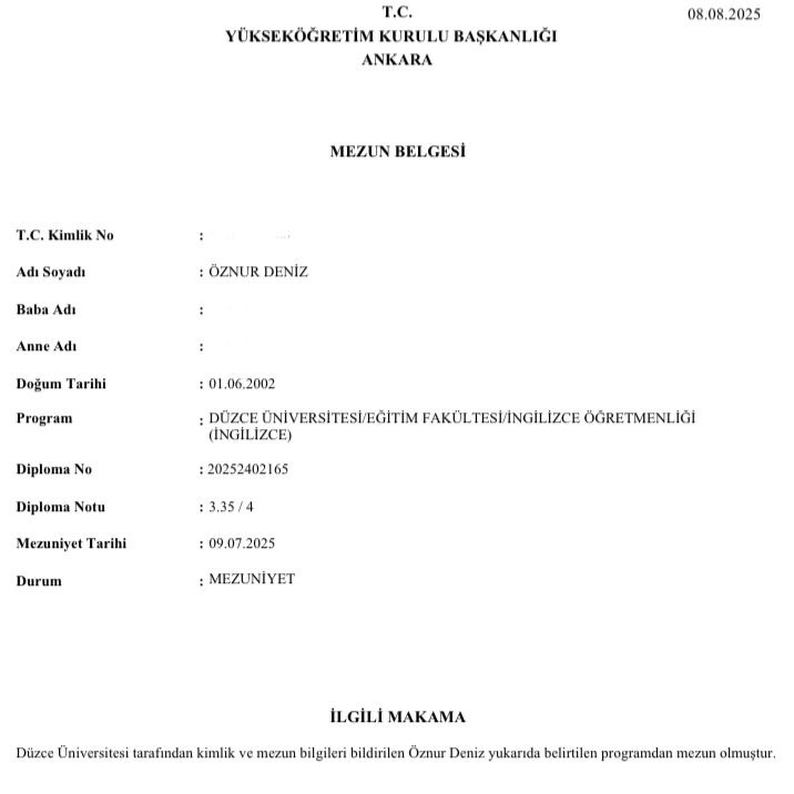 2023-2025 Düzce Üniversitesi (İngilizce Öğretmenliği)